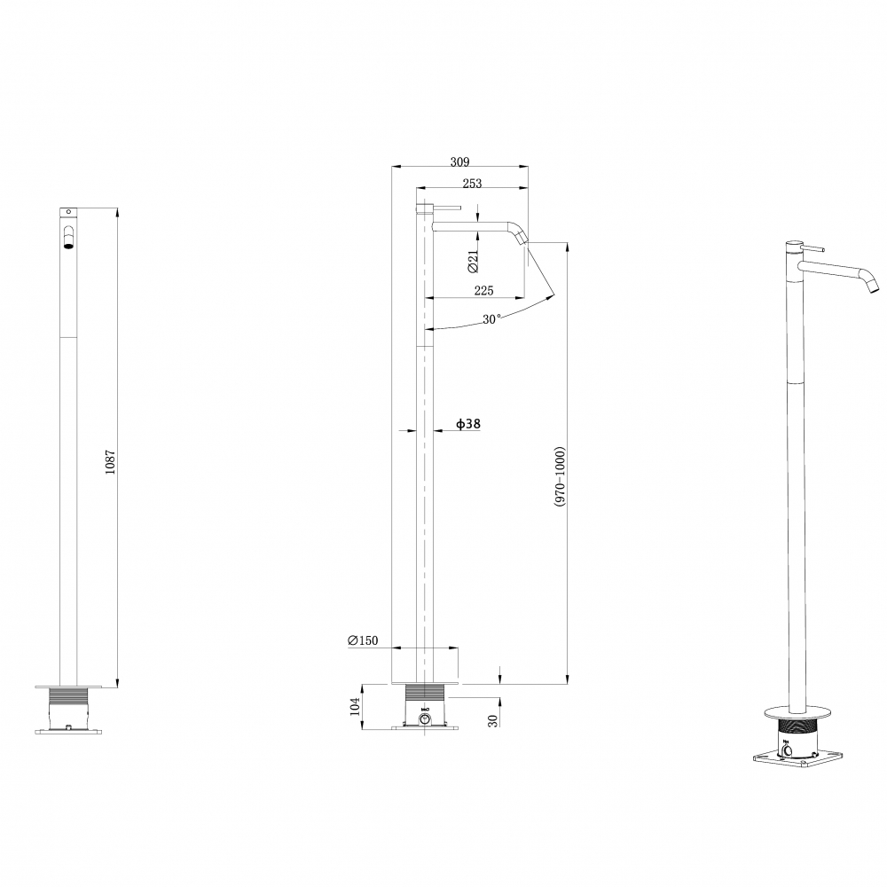 Смеситель ABBER Wasser Kreis 316 AF8140BST напольный для раковины, брашированная сталь