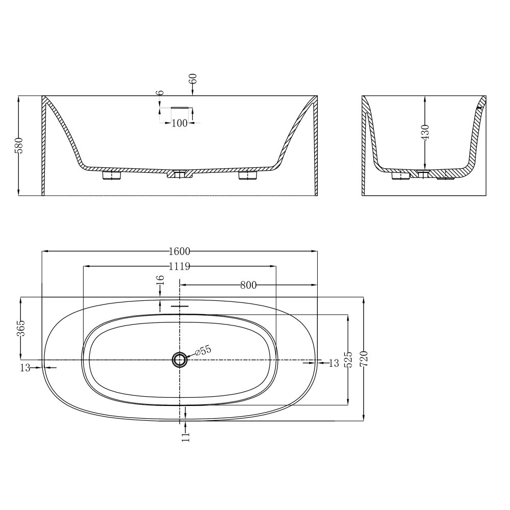 Ванна из искусственного камня ABBER Stein AS9681 белая матовая