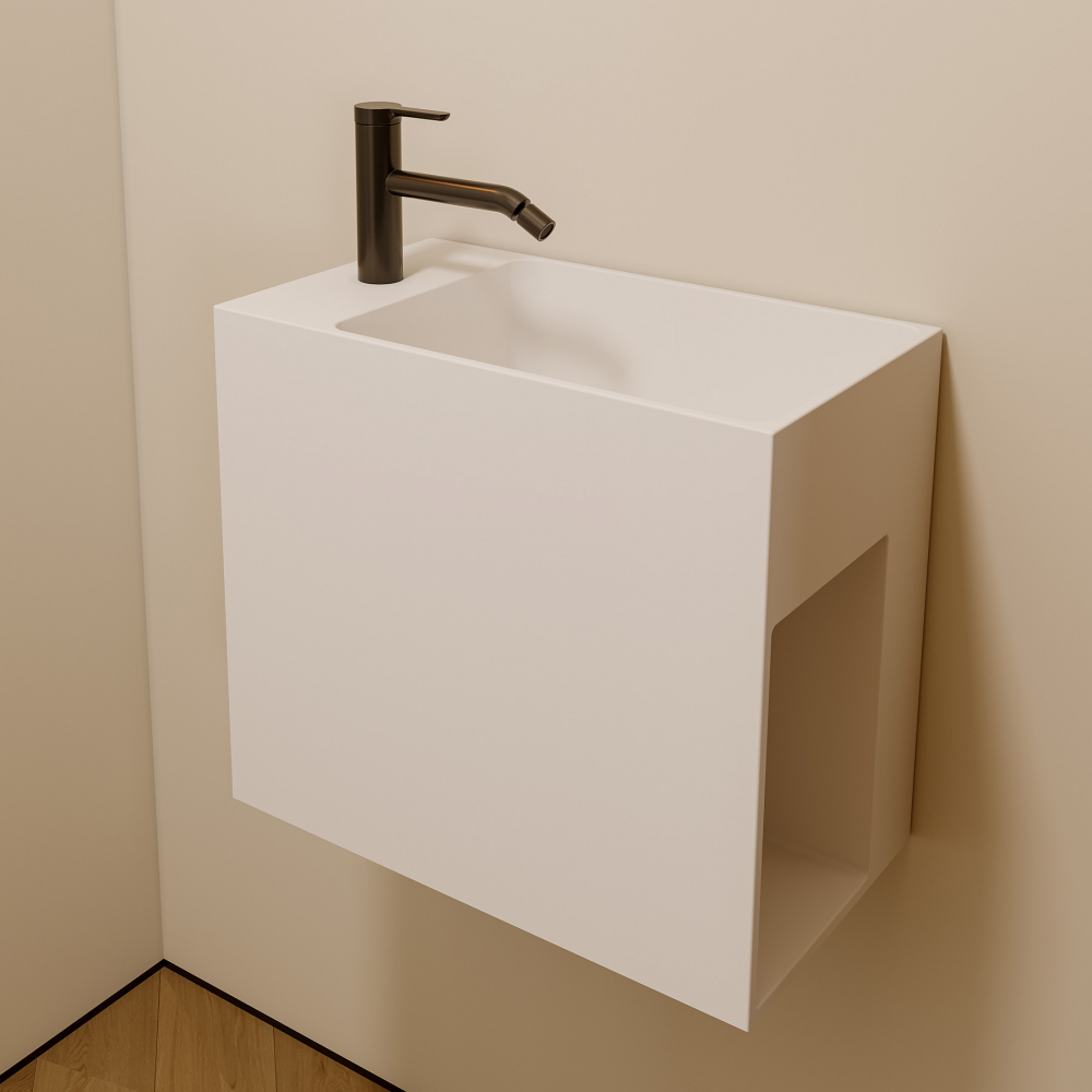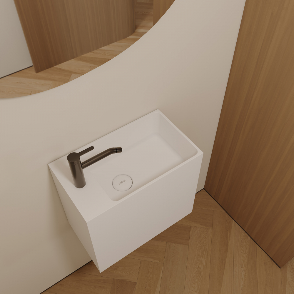 Тумба с раковиной ABBER Stein AS2656 L подвесная, белая матовая