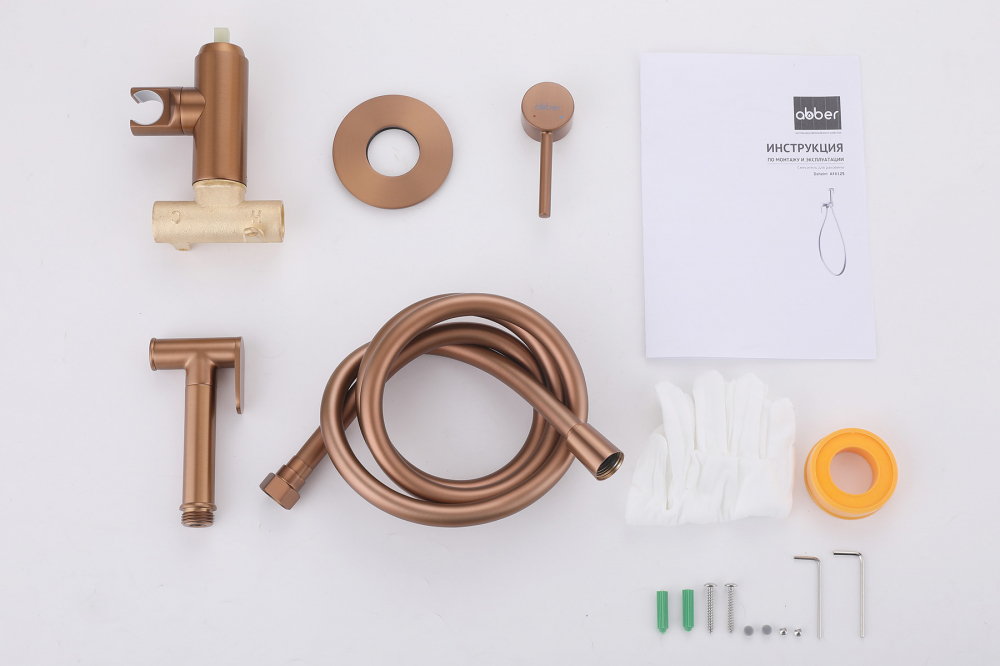 Смеситель ABBER Wasser Kreis AF8125MRG с гигиеническим душем, розовое золото матовое