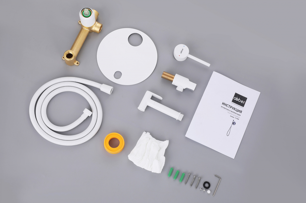 Смеситель ABBER Emotion AF8826W с гигиеническим душем, белый матовый